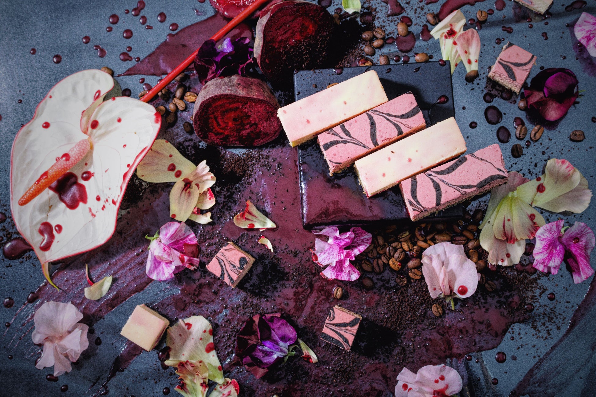 「ゴロっとビーツのチーズケーキ」は、角切りにしたビーツを散りばめています。ビーツの鮮やかな色合いがチーズケーキににじみ出し、YUKIYAMESHIらしい美しさを演出。さらに、ビーツの食感がアクセントとなり、味覚だけでなく食感も楽しめます。