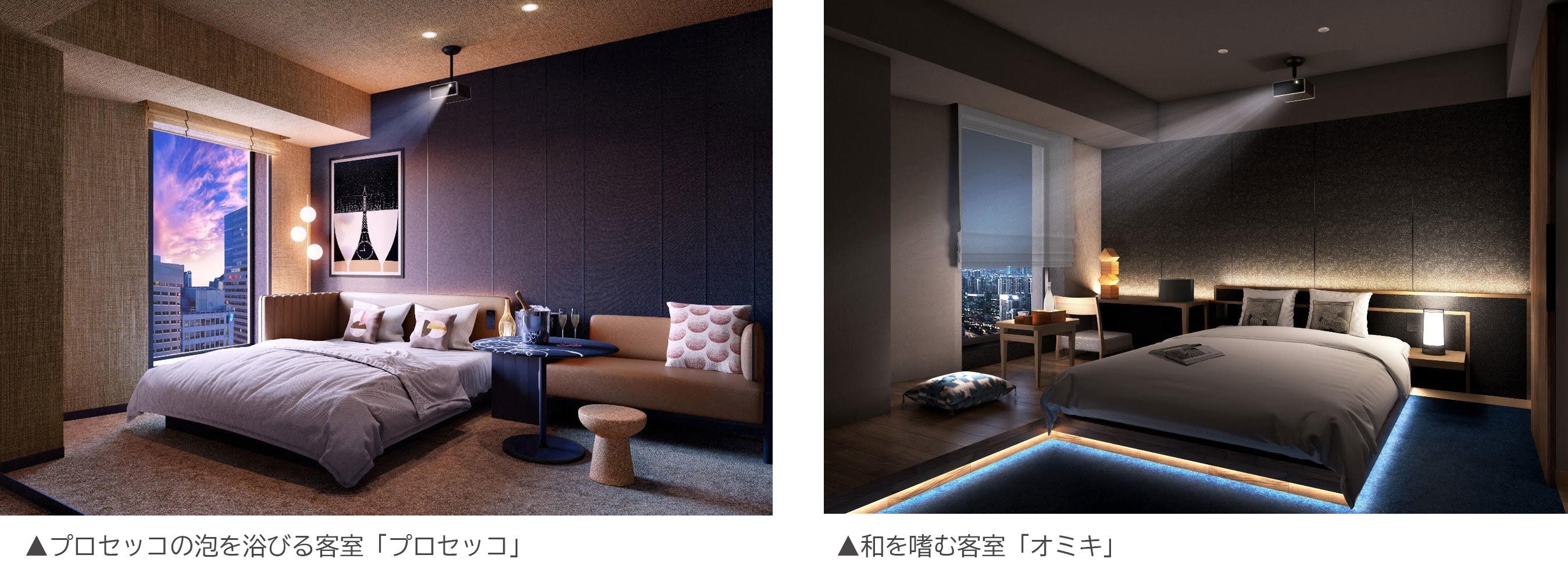 ▲カクテルの多彩な色と光や音の体験を散りばめる「キャンバス」 ※画像はデラックスツインタイプ