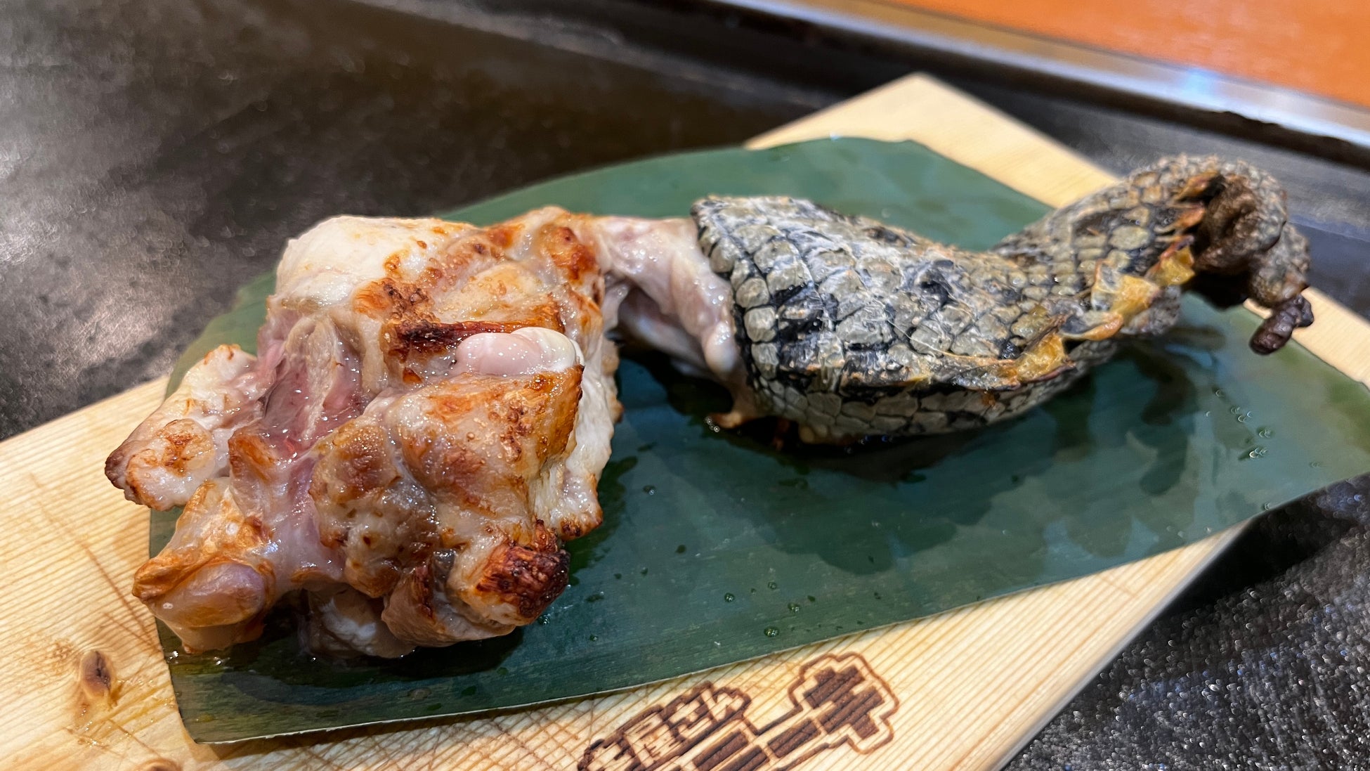 見た目のインパクトが強い一品となっておりますが、味は鶏肉と白身魚の間のような繊細な味となっております。