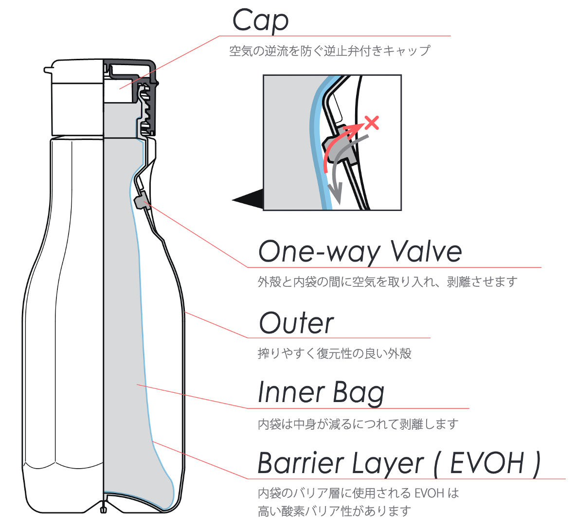 キョーラクは1947年にプラスチック業界に進出して以来、プラスチック成形のパイオニアとして常に「スペシャリティの追求」を続けてきました。近年需要が急速に拡大しているハクリボトルは、高い鮮度保持性に加え、使いたい分量だけしぼり出したり、中身が減っても自立性に優れているという、キョーラク独自の特殊な技術で生産されるボトルで、その優れた特性により、醤油や食用油、化粧品などの容器として幅広く利用されています。