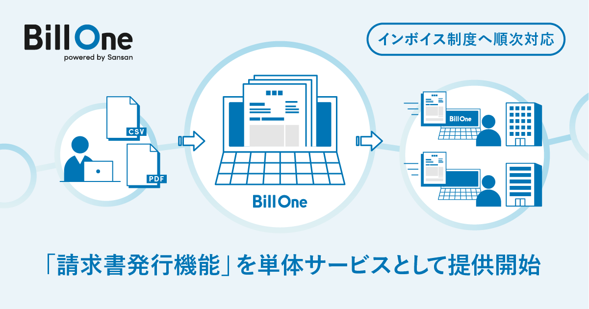 働き方を変えるビジネスデータベースを提供するSansan株式会社は、クラウド請求書受領サービス「Bill One」で、これまでオプション機能だった請求書発行機能を単体サービスとして提供開始します。2023年10月に導入されるインボイス制度への対応に向けてBill Oneの機能を順次拡充する中、ユーザーはBill Oneの請求書発行機能のみを契約することが可能になります。