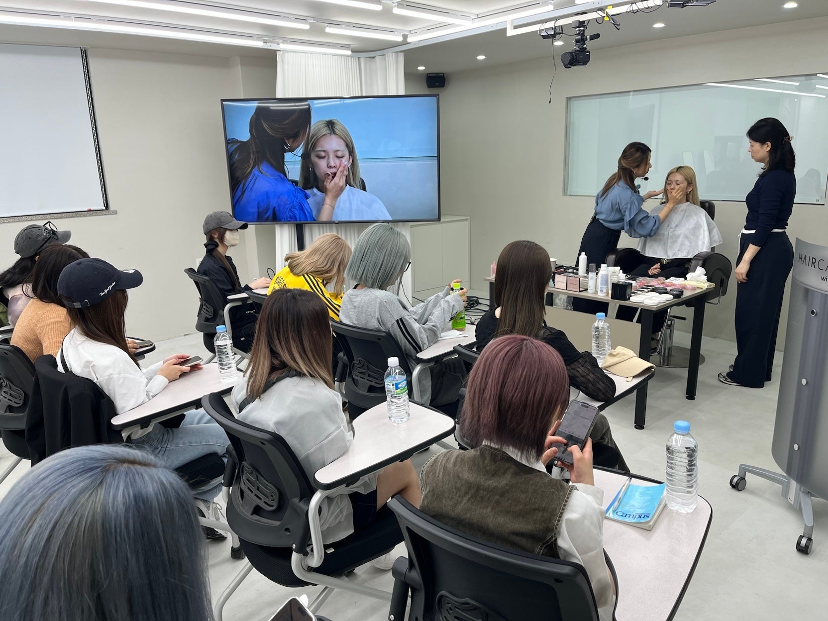 今回の韓国研修は、今年4月に入社した1年目のスタッフが参加者の約8割を占める、まさに「入社1年目からさまざまなことに挑戦できるAsh」を体現した研修となりました。参加したスタッフの皆さんは、知識面での学びはもちろん、美容の最先端をいく本場・韓国の技術や考え方の一つひとつに強い関心を示し、目の前で繰り広げられるデモストレーションにも目を輝かせながら研修に臨み、その後の実技でも真剣な眼差しで臨む姿がとても印象的でした。研修を受けることがゴールではなく、研修で得た学びをお客様やヘアメイク活動に活かしていくことが本当の目的です。