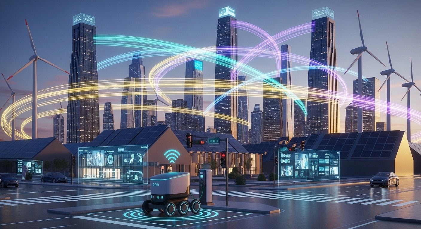 街を走る配送ロボットが、信号待ちのあいだ静かに充電を始める。ケーブルはつながっていない。無線電力ネットワークを流れる電力の中から、そのロボットに割り当てられた電力だけが選ばれている。