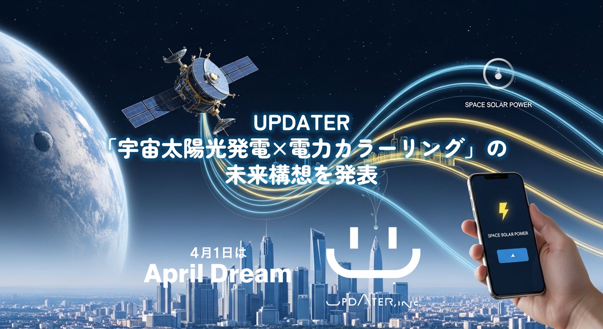 ライフスタイルから社会のアップデートを目指す株式会社UPDATER(本社:東京都世田谷区、代表取締役:大石英司)は、京都大学大学院情報学研究科 梅野健教授との共同研究で開発した無線電力識別技術「電力カラーリング」を応用し、宇宙太陽光発電(SBSP)と組み合わせた将来のエネルギーインフラを検討し、その構想をApril Dreamとして発表いたします。