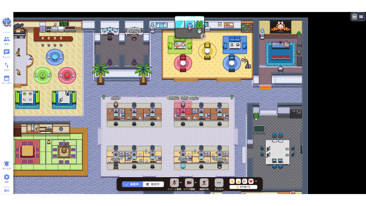 ・メンバーそれぞれが好きなタイミングでバーチャルオフィスに入室可能