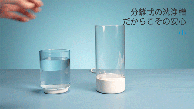 超音波洗浄 / UV除菌 / 二つの洗浄槽 / 取り外せる洗浄槽 / コップ式デザイン