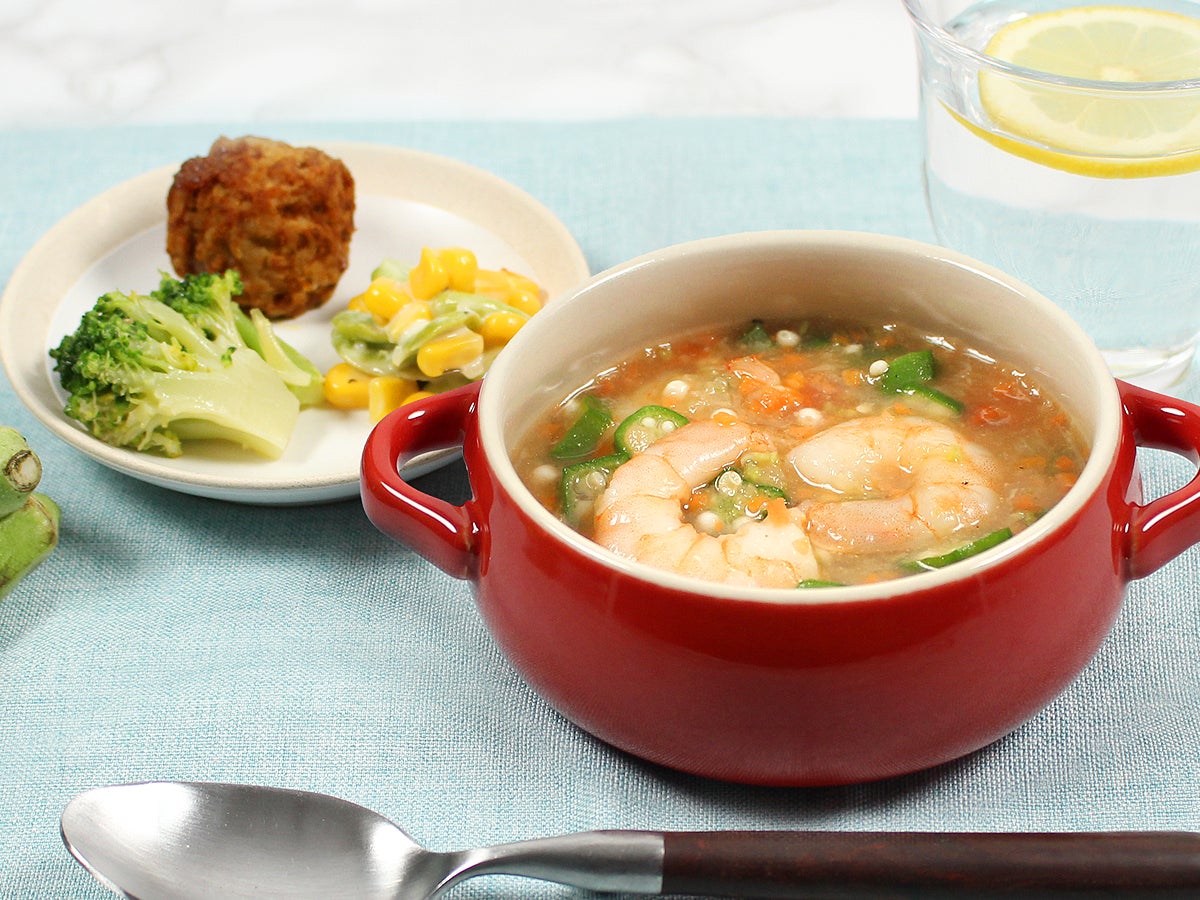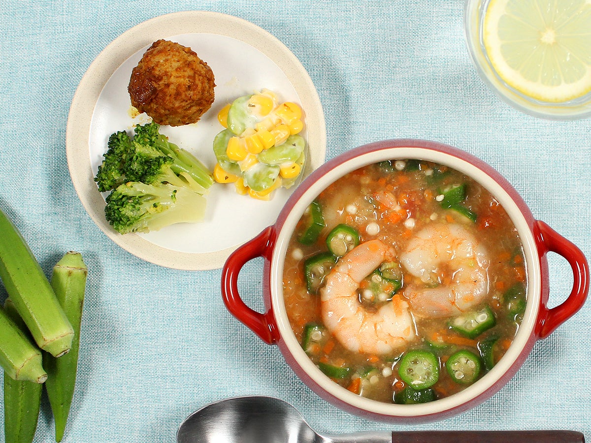 オクラをふんだんに使ったアメリカ南部の料理「海老とオクラのガンボスープ」がナッシュから新発売
