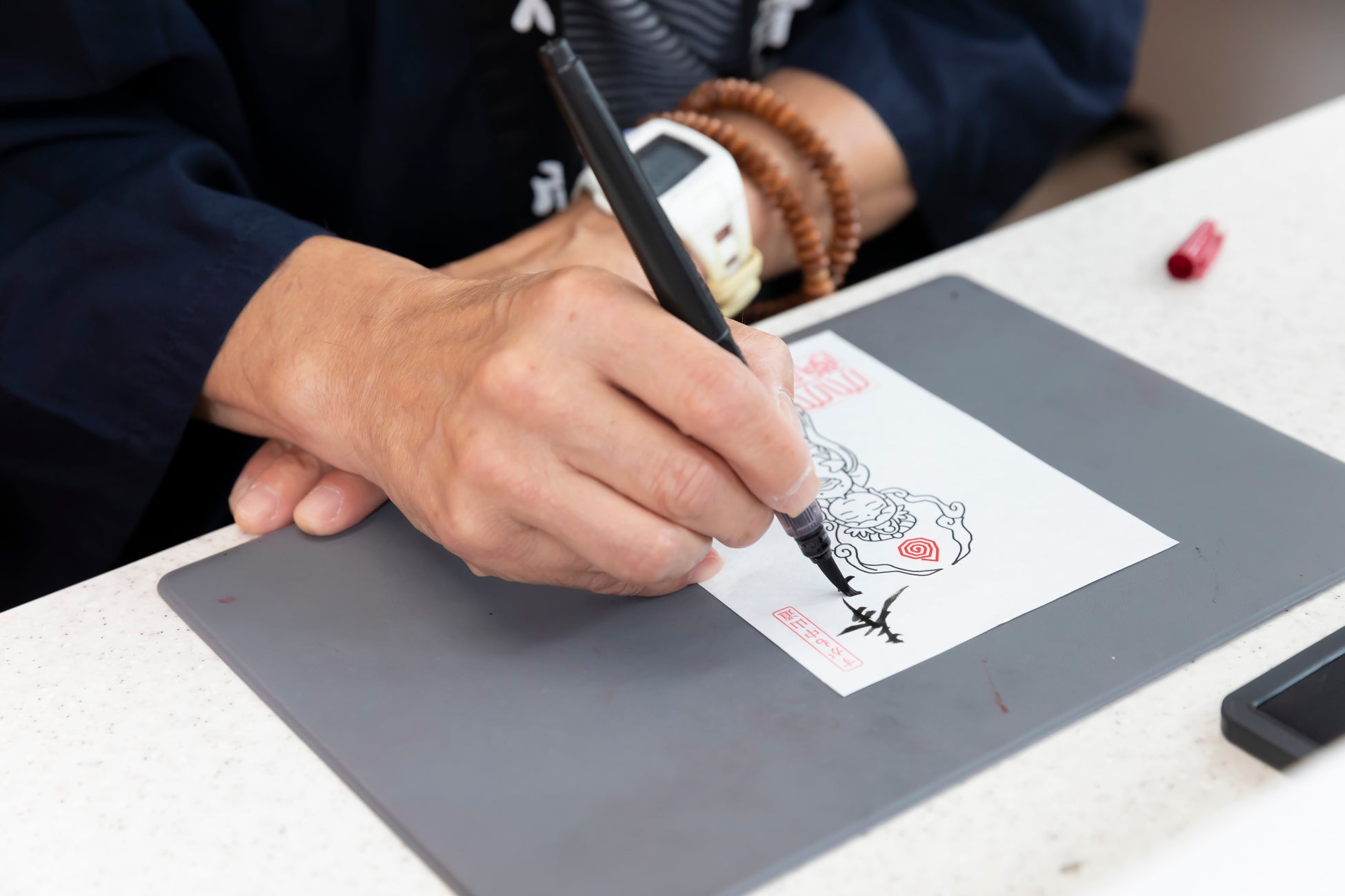 ① 令和6年度学位授与式に合わせて在学生が卒業生に感謝の気持ちを込めた御朱印を浄書します