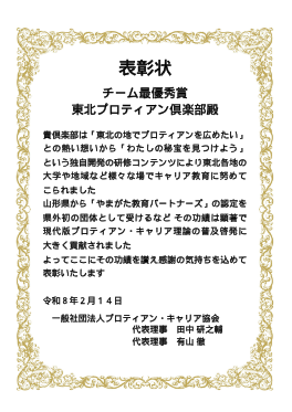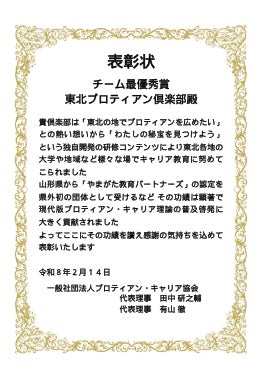 「東北の地でプロティアンを広めたい」という思いで授業コンテンツを独自開発して東北各地の学校や地域など様々な場でキャリア教育に努めてきたことが評価されました。