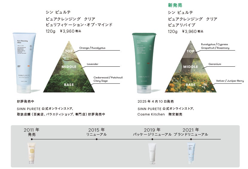 『SINN PURETÉ(シンピュルテ)』(製販元:株式会社アナイスカンパニー 東京都港区、発売元:株式会社JIMOS 福岡県福岡市)は、2025年4月10日より、歴代ブランド人気No.1 アイテム、心と肌を浄化する“ピュアクレンジング クリア”から初の新しい香り「ピュアリバイブ」を発売いたします。