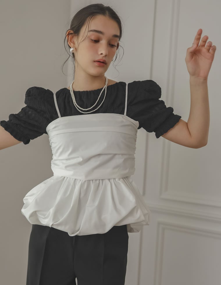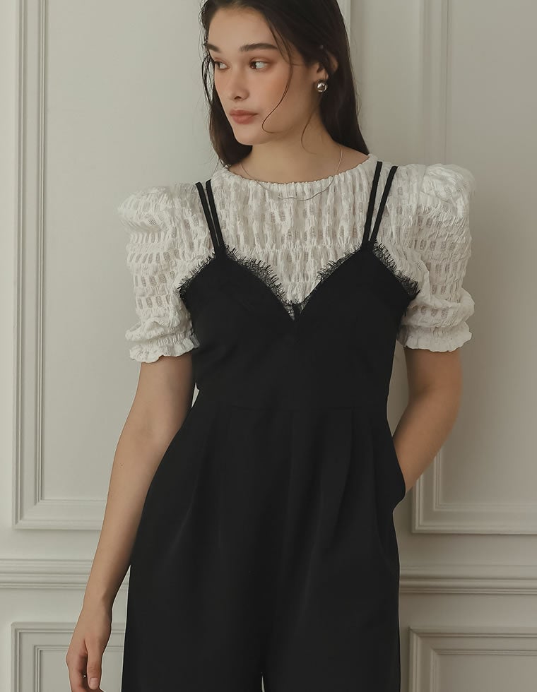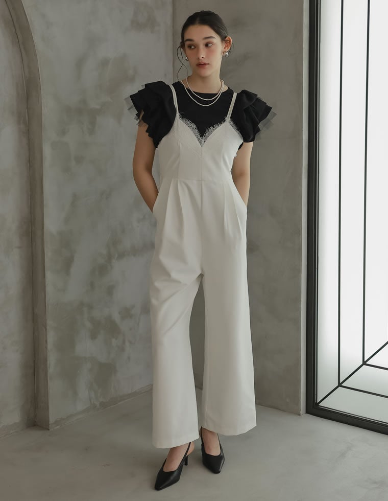 ギャザーを施したトレンドライクなバルーンシルエットのビスチェ風キャミソールや、カジュアルになりがちなオールインワンも、繊細なレースの縁取りとシルエットでエレガントな印象をプラスします。