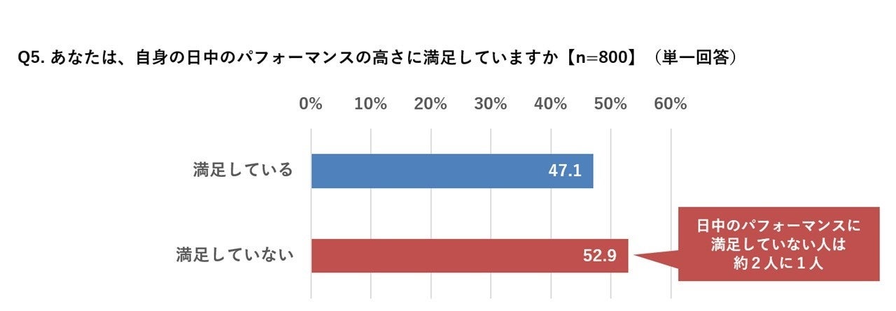 ・2人に1人は自分の日中のパフォーマンスに満足しておらず、「自身の翌朝のパフォーマンスを高めたい」と思っている人は約8割。