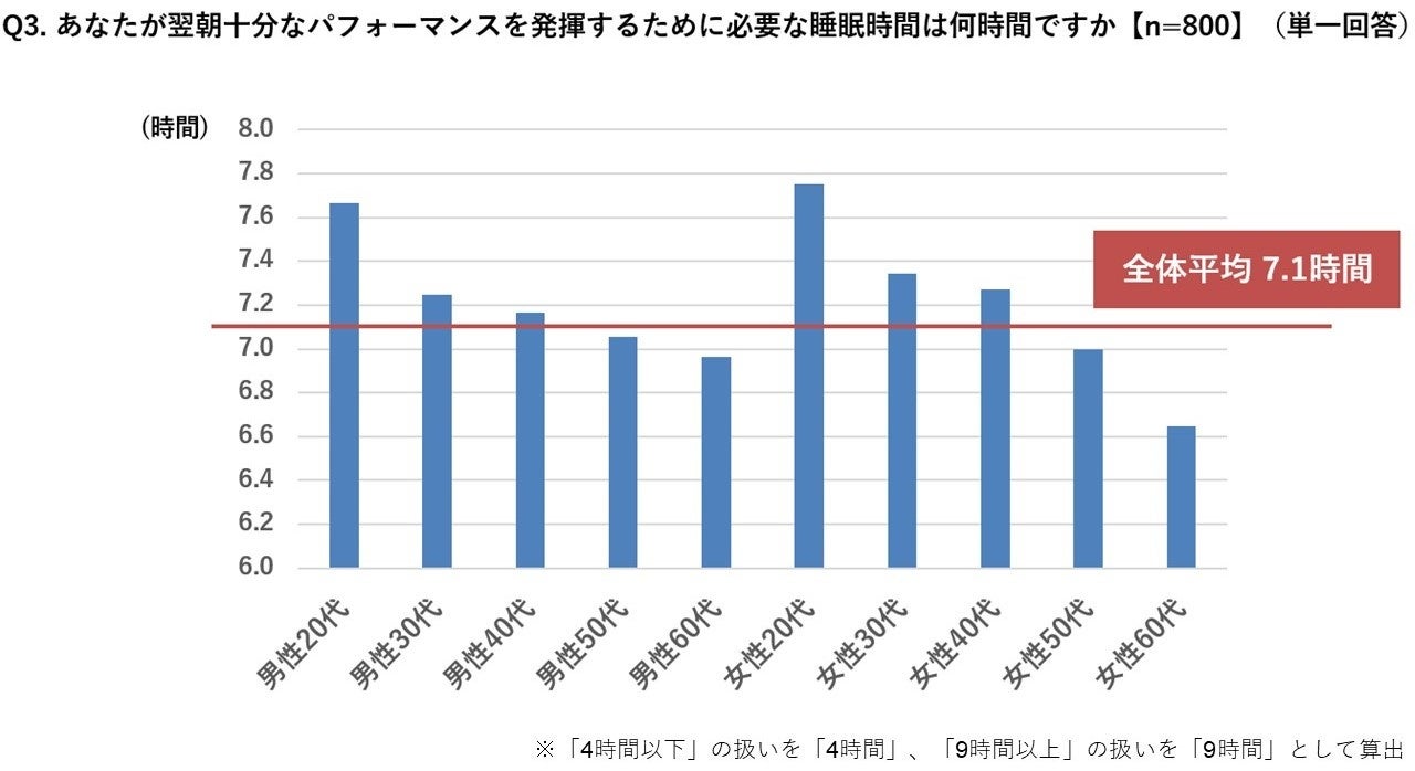 ●翌朝十分なパフォーマンスを発揮するために必要だと感じる平均睡眠時間は「7.1時間」。