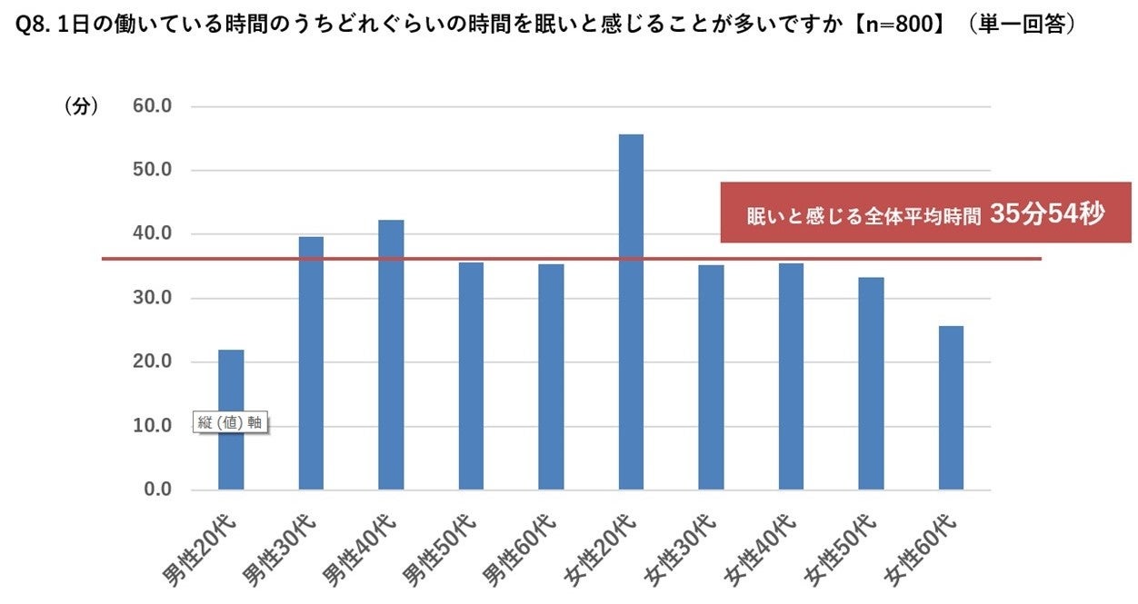 1日の働いている時間のうち、眠いと感じている平均時間は35分54秒。