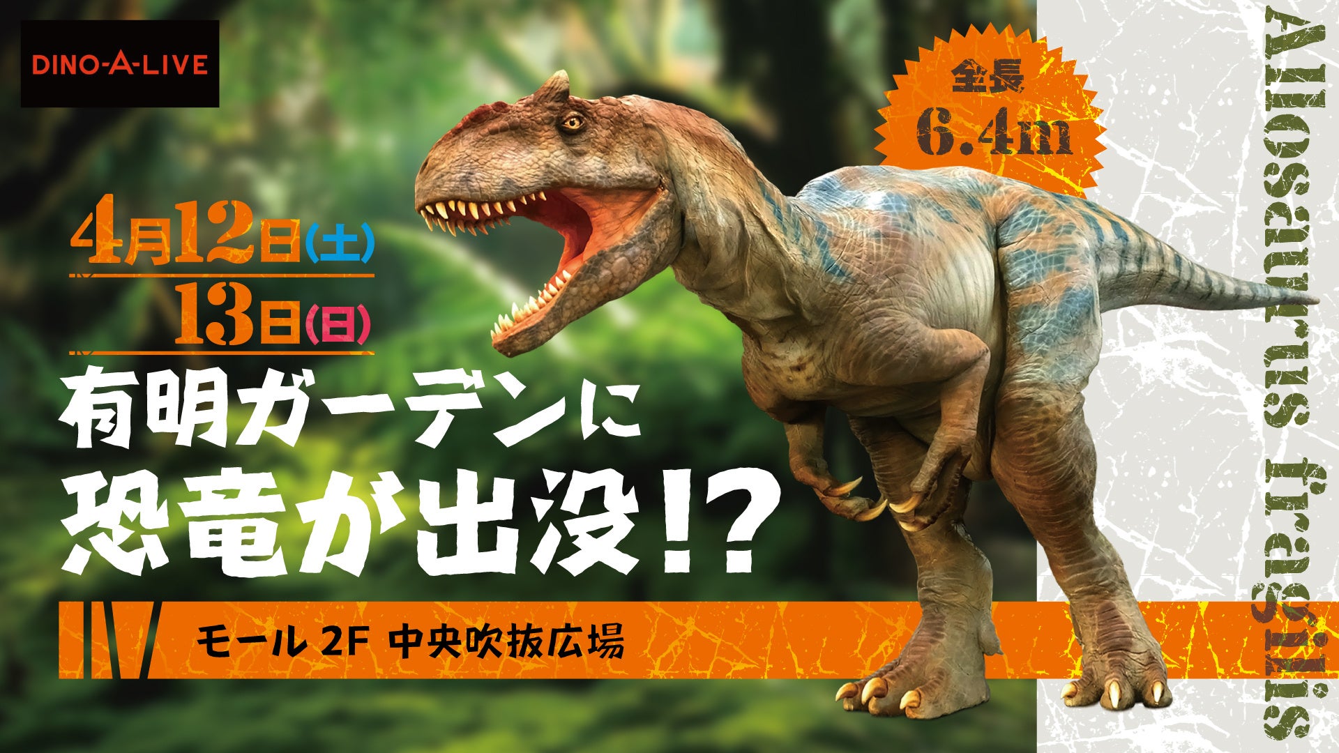 DINO-A-LIVE『ア・ダイナソーオデッセイ 2025』の開催を記念し、プロモーションイベントとして「恐竜グリーティング」を実施いたします。有明ガーデンモール内において、大型恐竜アロサウルス(全長6.4m)が出現し、グリーティングを行います。