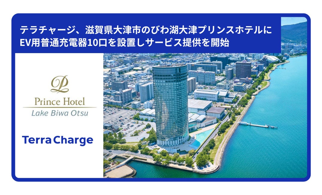 テラチャージ、滋賀県大津市のびわ湖大津プリンスホテルに電気自動車(EV)用普通充電器10口を設置しサービス提供を開始