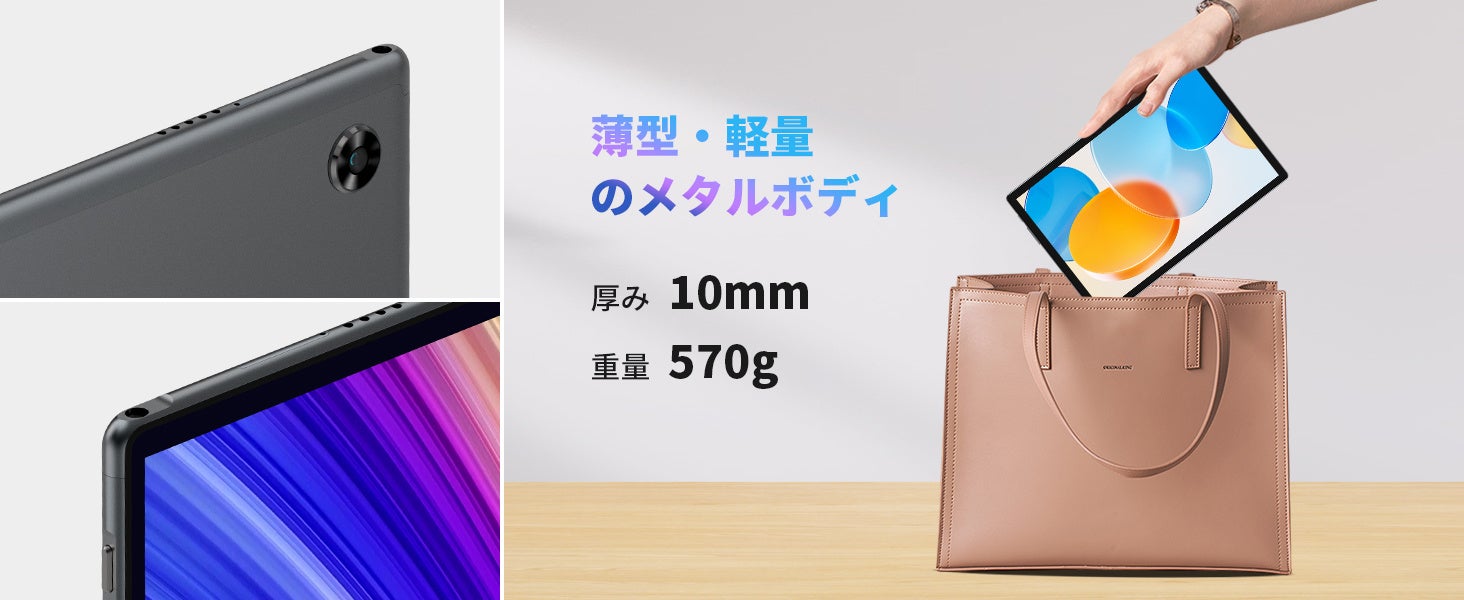 視野角が広く、卓越した演色性を備えたディスプレイがあり、画面上のあらゆるものを表示するのがはるかに楽しくなります。BOEテクノロジー広視野角の10.1インチIPS FHDスクリーンは、印象的な視覚体験を提供します。軽くて薄い金属製の筐体が利用して、2.5Dタッチスクリーンと湾曲したエッジと組み合わせ、スムーズなタッチ体験を提供します。