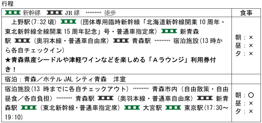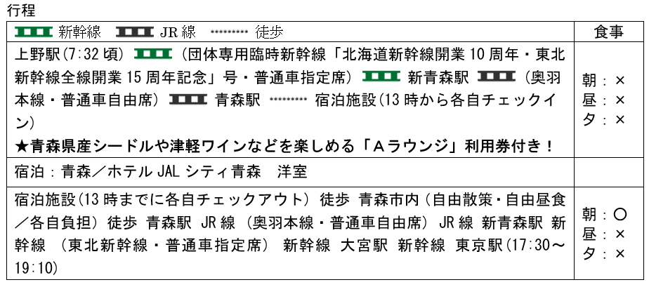 4.「北海道新幹線開業10周年・東北新幹線全線開業15周年記念」号で行く!自由に楽しむ青森2日間/「大人の休日倶楽部20周年特別企画 ご愛顧感謝祭」