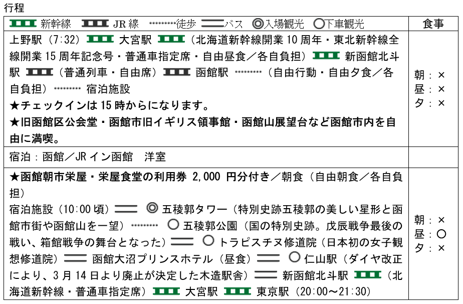 旅行代金(上野駅発):大人96,000円/大人1名様・1室2名利用時
