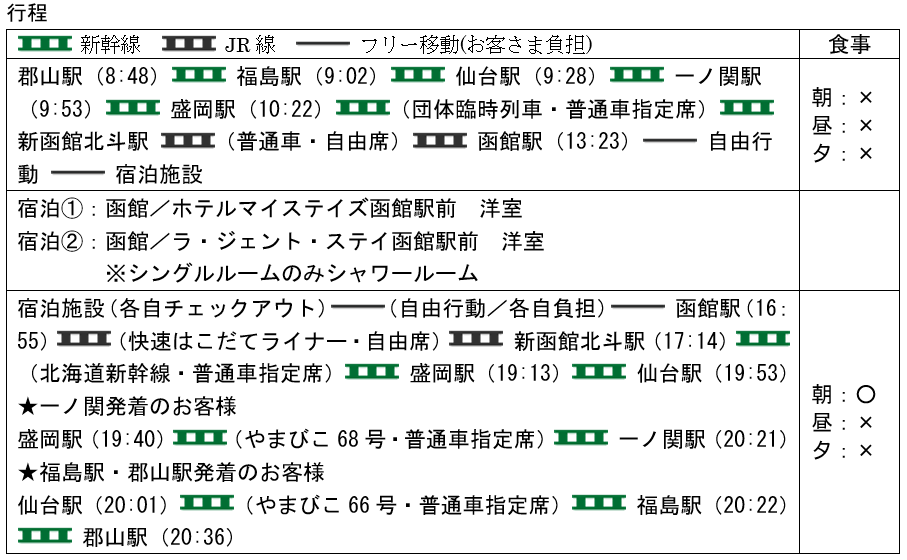 旅行代金(郡山駅発)