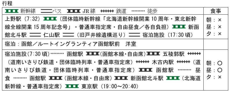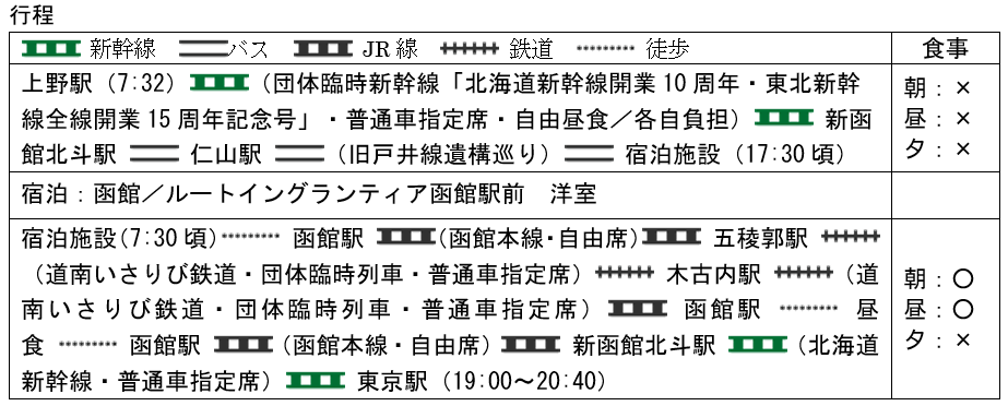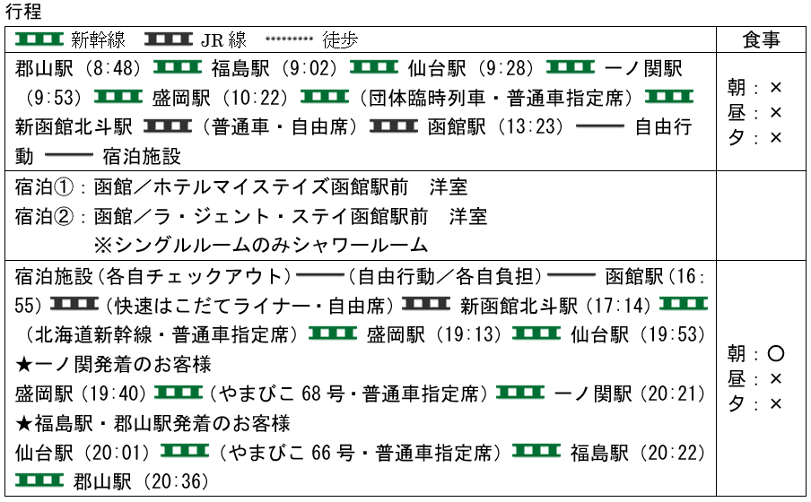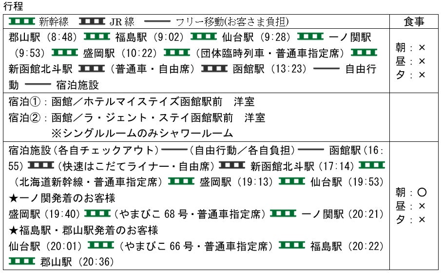 5.【団体専用臨時列車】ビューンと函館フリータイム(函館市内1泊2日・1~3名1室利用)