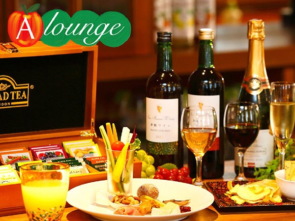 青森県産シードル、津軽ワインなどのアルコールやリンゴジュースなどの青森ならではのドリンク、 ホテルオリジナルのオードブルやスイーツなど青森の"うまいもの"を楽しみながらゆっくりとお寛ぎください。
