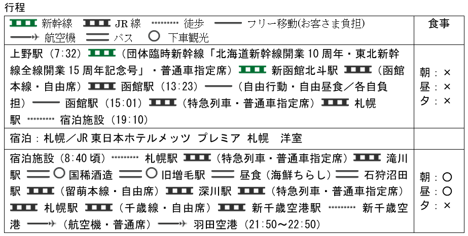 本商品では、首都圏および東北各地から出発し、青森・北海道方面へ向かう特別な新幹線にご乗車いただきます。現地では、各地のホテルでの宿泊がセットとなっており、記念イヤーにふさわしい特別な旅をお楽しみいただけます。
