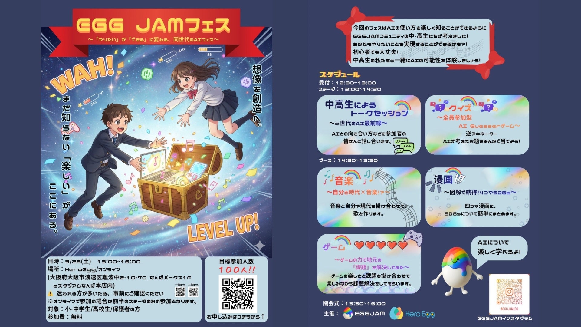 【いよいよ明日開催(3/28)】中高生が企画・運営するAIフェス「 EGG JAMフェス」申込受付開始のお知らせ(先着100名)