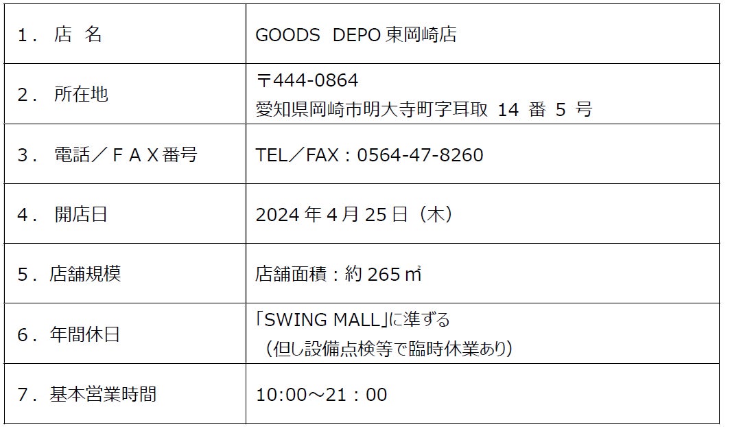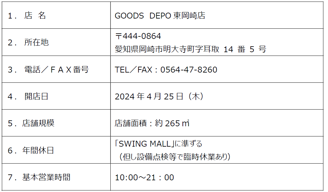 【平和堂】4月25日(木) 社外SCへ初出店「GOODS DEPO東岡崎店」オープン