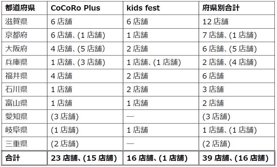 ※CoCoRo Plusの大阪府内店舗には、リノアス八尾店(2024年4月19日オープン)、あべのアンド店(2024年4月25日オープン)を含んでいます。