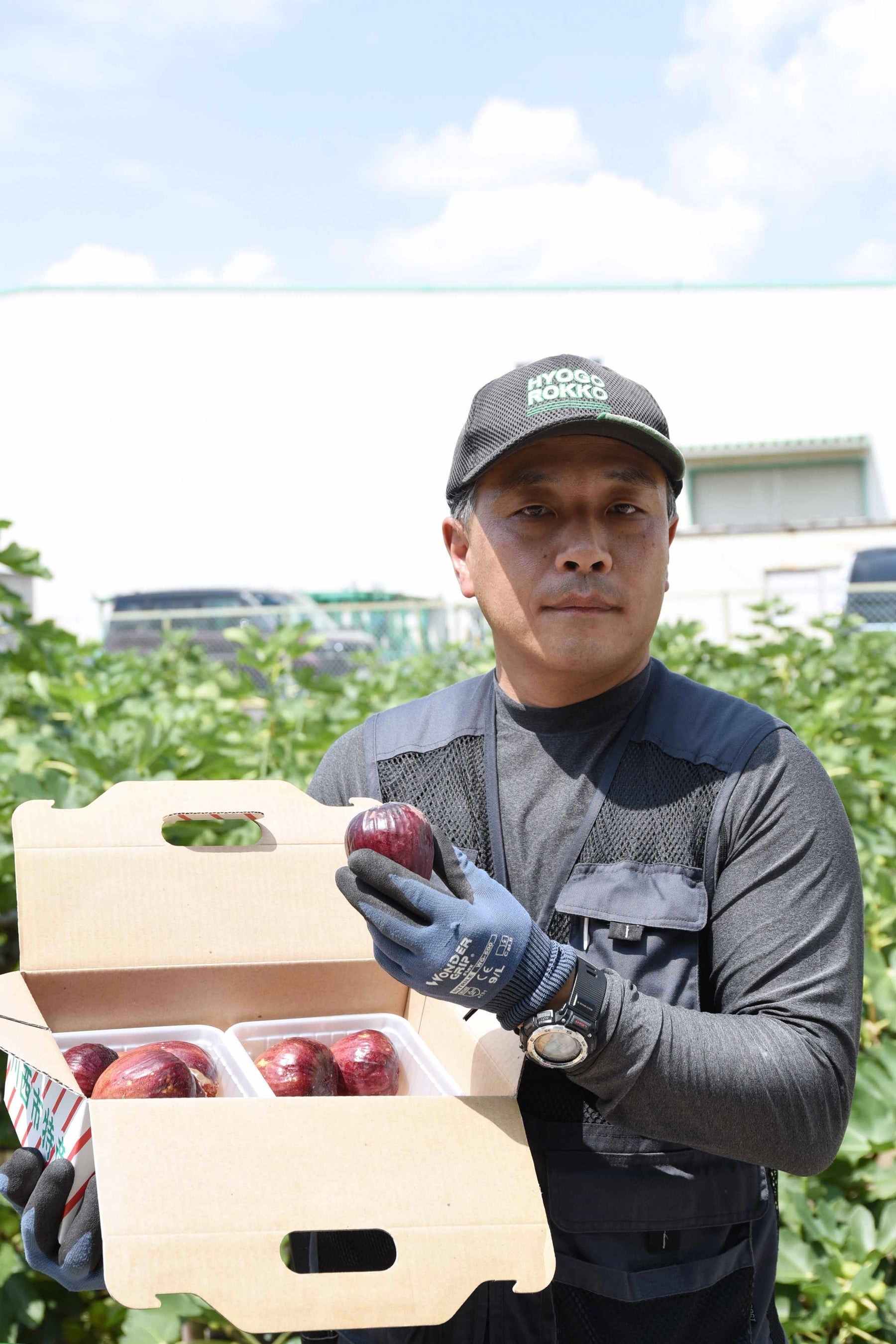作業にあたっている山田さんは、「今年は収穫前から雨が少なくなり、高温で晴天の日が続いたので、赤い色づきもよく、甘いいちじくになりました。川西のいちじくは完熟を朝採りしているので、前日の夕方に採る他の地域のものとは味が違います。ぜひ味わってほしいですね」などと話していました。