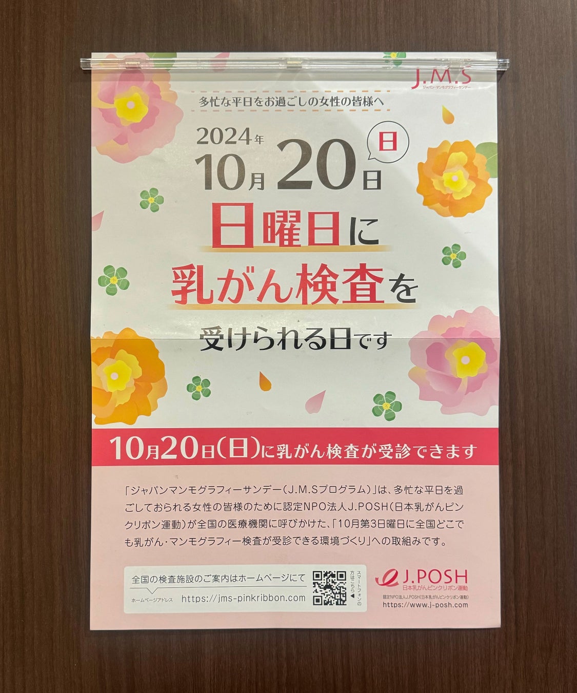 ピンクリボン月間に合わせて、社内で啓発ポスターの掲示や啓発リーフレットの設置を行うとともに、社員向けにピンクリボン運動や乳がんに関する情報を発信しています。また、期間中には、社内でピンクリボン運動啓発グッズも販売しています。売上は「J.POSHピンクリボン基金」として、乳がん罹患者の子ども(高校生)を対象とした「J.POSH奨学金まなび」や、乳がん罹患者が乳幼児の一時保育を依頼する際の費用を一部負担する「シッターサポートプログラム」など、J.POSHのさまざまなプログラムに充当されます。