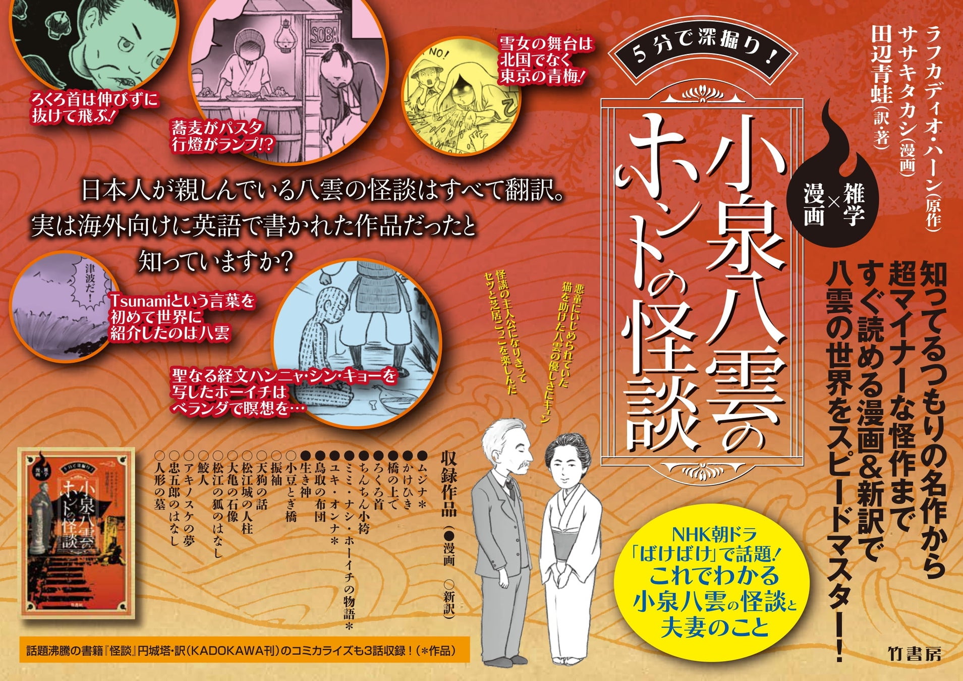 株式会社竹書房(所在地:東京都千代⽥区、代表取締役社⻑:宮⽥ 純孝)は、ラフカディオ・ハーン/小泉八雲(原作)ササキタカシ(漫画)田辺青蛙(訳・著)『5分で深掘り!小泉八雲のホントの怪談 雑学×漫画』を2025年10月3日(金)に発売いたします。