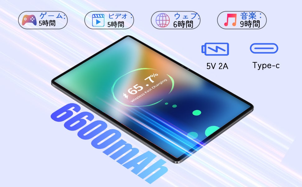 超高解像度ディスプレイ+大容量バッテリー: NPad Airタブレットは10.1インチのIPS液晶ディスプレイを搭載。高解像度で視野を広げ、16:10の画面比率で快適な動画視聴体験を提供。6600mAh大容量バッテリーにより、長時間利用が可能。軽量化ボディで持ち運びも便利。