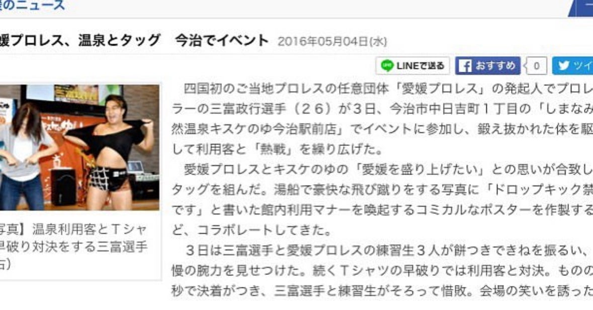 私たちの関係の原点は、2016年の旗揚げを報じた新聞記事を見て興味を持ったことでした。“プロレスで愛媛を元気にする”というメッセージに心を動かされ、地域をエンタメの力で盛り上げたいという思いが自然に重なったことが、今につながるご縁の始まりです。