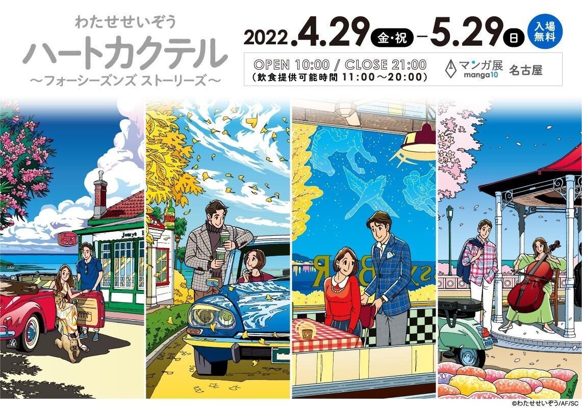 株式会社TORICO(本社:東京都千代田区 代表:安藤拓郎)は、愛知県名古屋市東区オアシス21内の「マンガ展 名古屋」にて『わたせせいぞう自選集 ハートカクテル』“四季編”刊行記念 ポップアップショップ&カフェを2022年4月29日(金・祝)~5月29日(日)まで開催いたします。