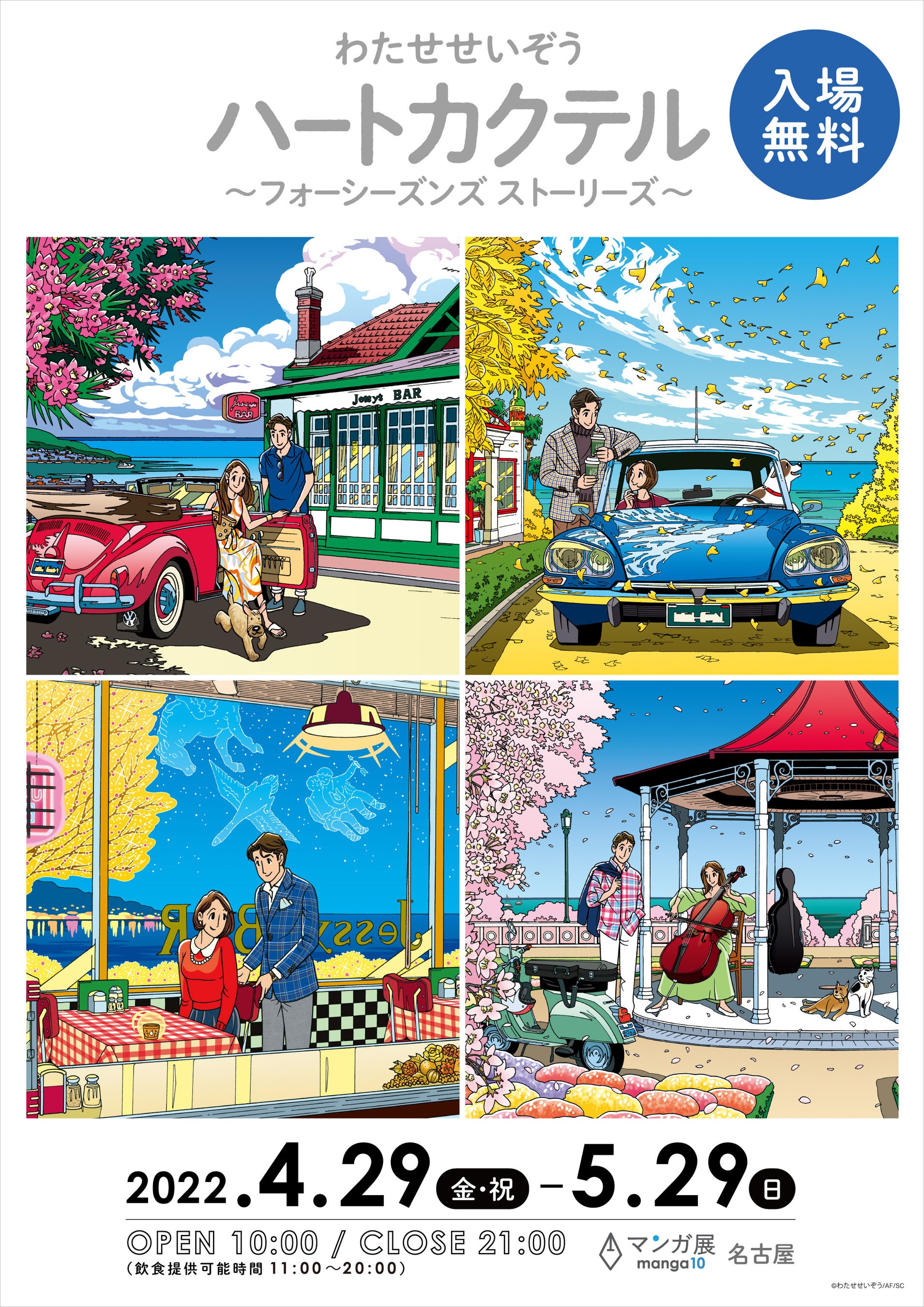 2021年7月より4つの季節をかけて、わたせせいぞう先生自らにより厳選された最新アンソロジーシリーズ『わたせせいぞう自選集 ハートカクテル』“四季編”全4巻が刊行されました。2022年4月29日(金・祝)から5月29日(日)まで『わたせせいぞう自選集 ハートカクテル』“四季編”全4巻の刊行を記念した、ポップアップショップ&カフェをマンガ展 名古屋にて期間限定で開催いたします。