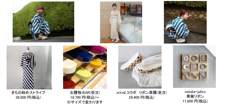 大塚呉服店は、「きものが着たくなる呉服店」をコンセプトに、日常のファッションとして楽しむきものを提案する呉服ブランドです。店頭では斜めストライプ新色が数量限定で登場。また、大好評のリボン作家mYmIとのコラボコーナーが今年も販売され、限定のリボン草履などのアイテムを販売いたします。