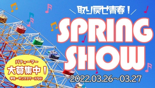 那須ハイランドパークでは、3月26日(土)、27日(日)の2日間、公募制によるパフォーマンスイベント「スプリングショー」を開催いたします!コロナ禍で発表の場が失われてしまった学生チームはもちろん、ダンススクールチームなど、出演者を現在大募集中!取り戻せ青春!みんなで一緒に楽しもう!