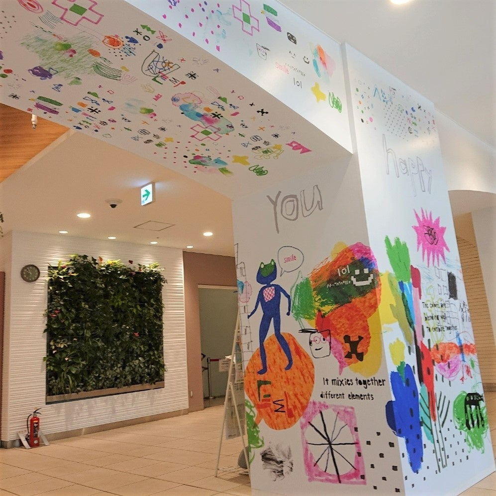 1階のエントランス、各階エレベーター扉を手掛けたアーティストのCBA氏と一緒に東急プラザ新長田の壁にぬり絵をするイベントを開催します。CBA氏とお客様で完成させた絵は、継続的に施設内に展示をする予定ですので、東急プラザ新長田を訪れるたびに、お客様の思い出がよみがえるイベントです。