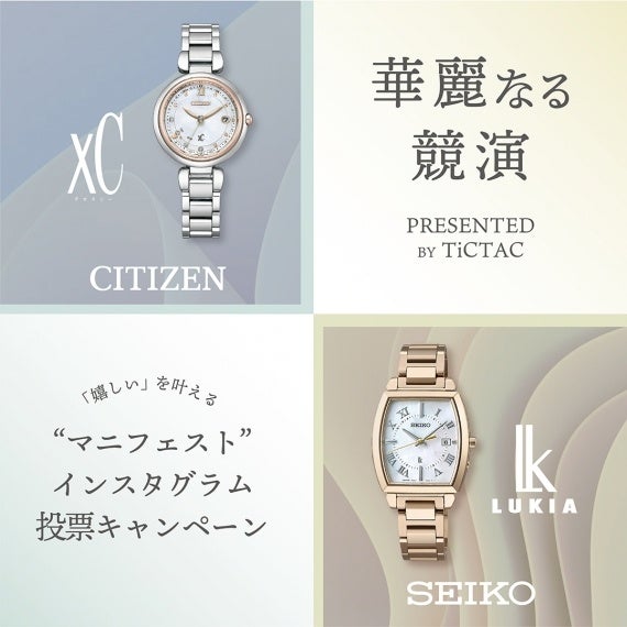 腕時計の専門店「チックタック」が、2022年10月28日(金)から2022年11月6日(日)まで、Instagram投票企画『「嬉しい」を叶える “マニフェスト”インスタグラム投票キャンペーン』を開催。11/19(土)~12/14(水)の期間中にxCまたはLUKIAをご購入いただいた方に、投票で選ばれたマニフェストを、各ブランド実施することをお約束します。