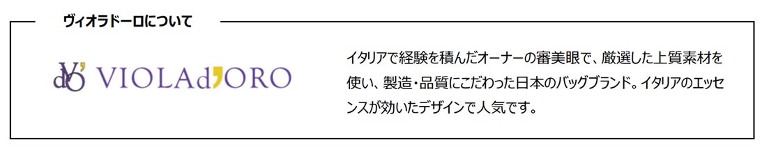 株式会社アテニアは、上質な素材でトラディショナルな中にも旬のエッセンスを織り交ぜたバッグブランド『VIOLAd’ORO (ヴィオラドーロ)』とのコラボレーション第三弾の発売を決定。