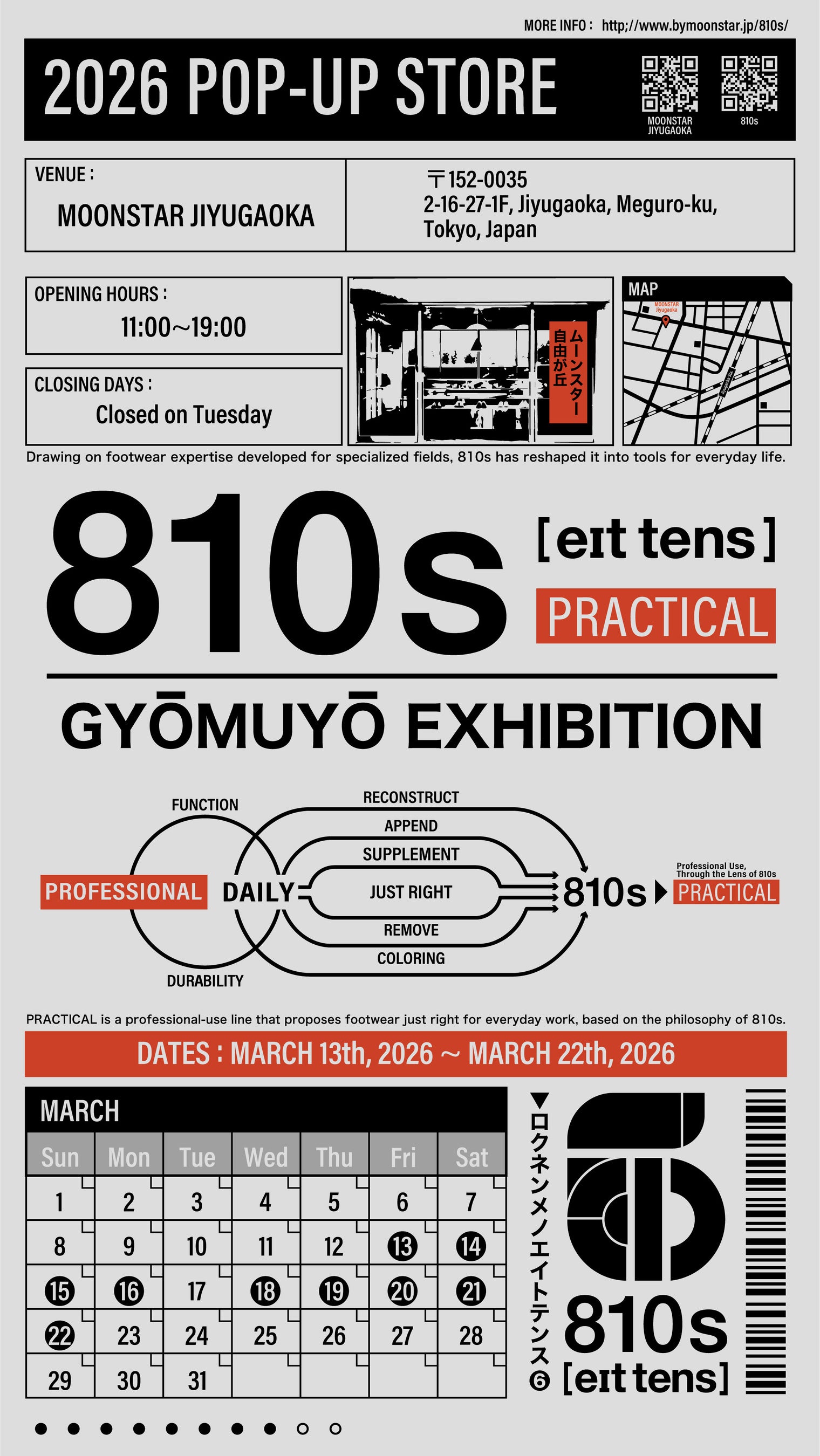 810s PRACTICALから新製品「ET-P005」が登場MOONSTAR JIYUGAOKAで“GYŌMUYŌ EXHIBITION”を開催