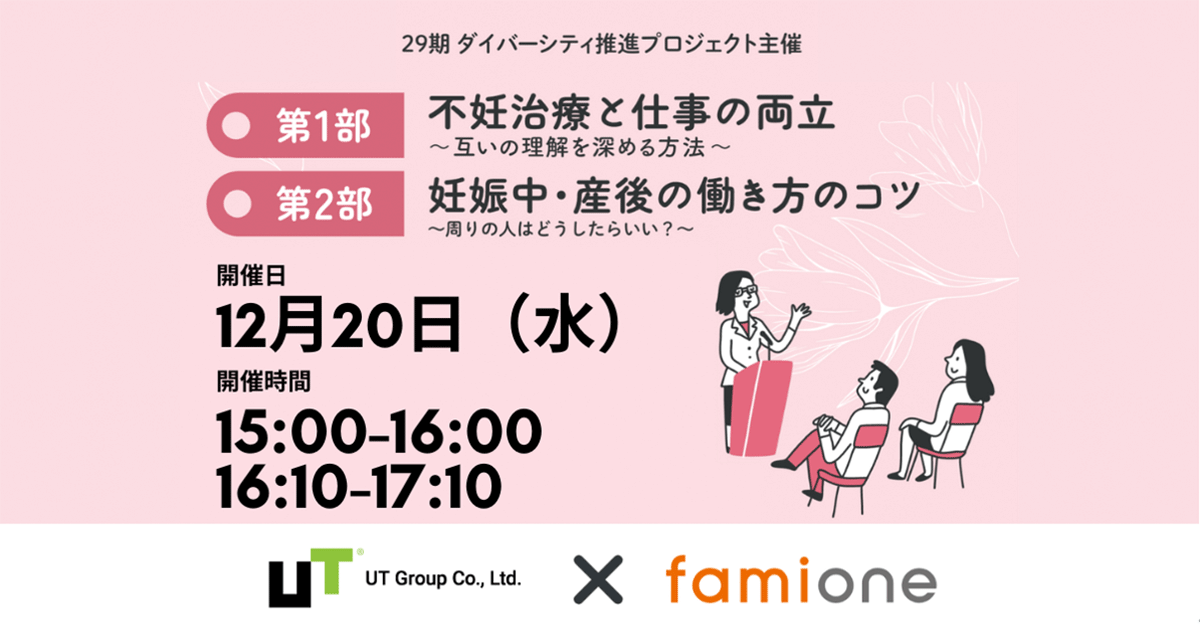UTグループの従業員を対象に「不妊治療と仕事の両立」「妊娠中・産後の働き方のコツ」をテーマにしたオンラインセミナーを開催