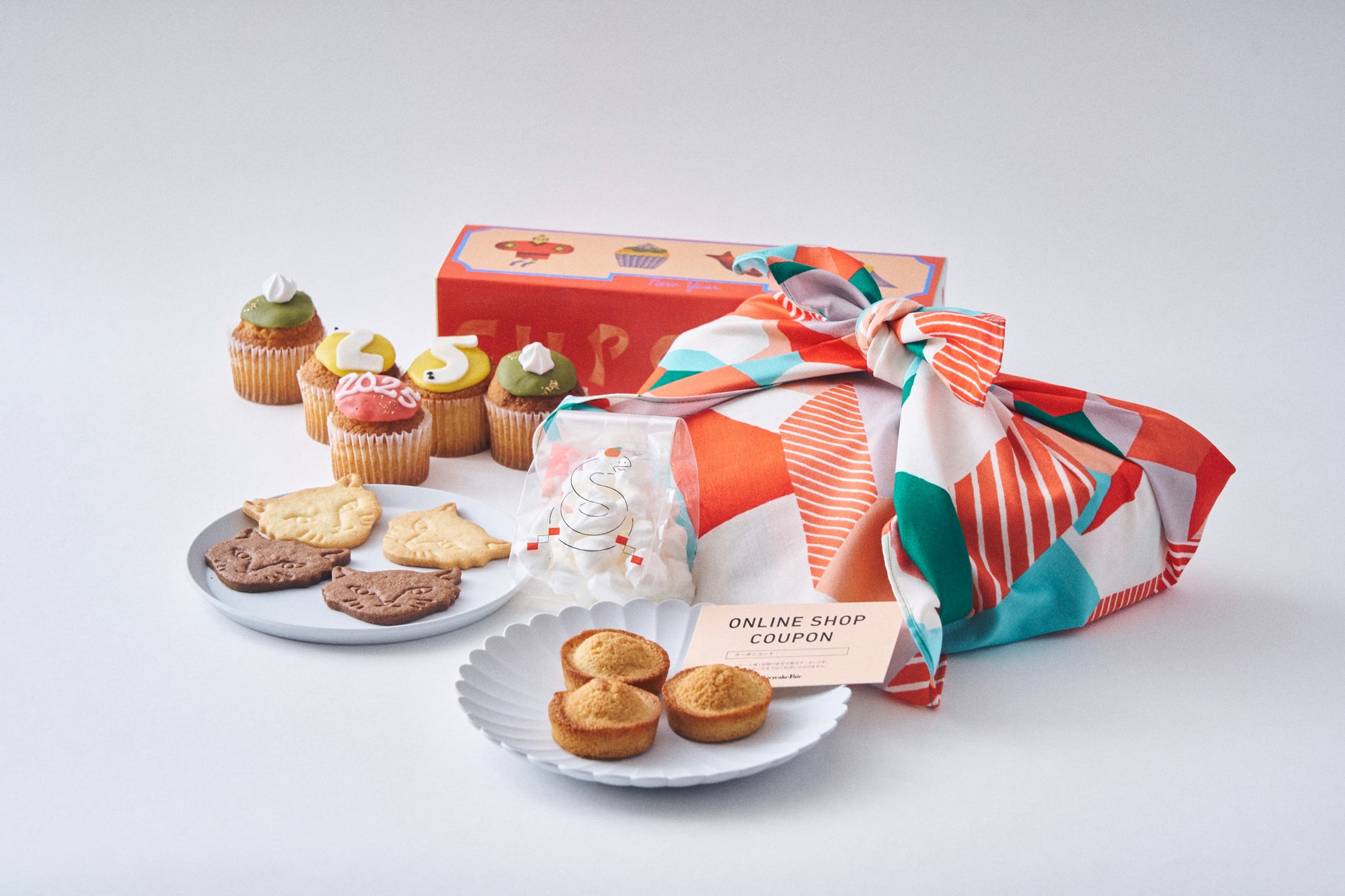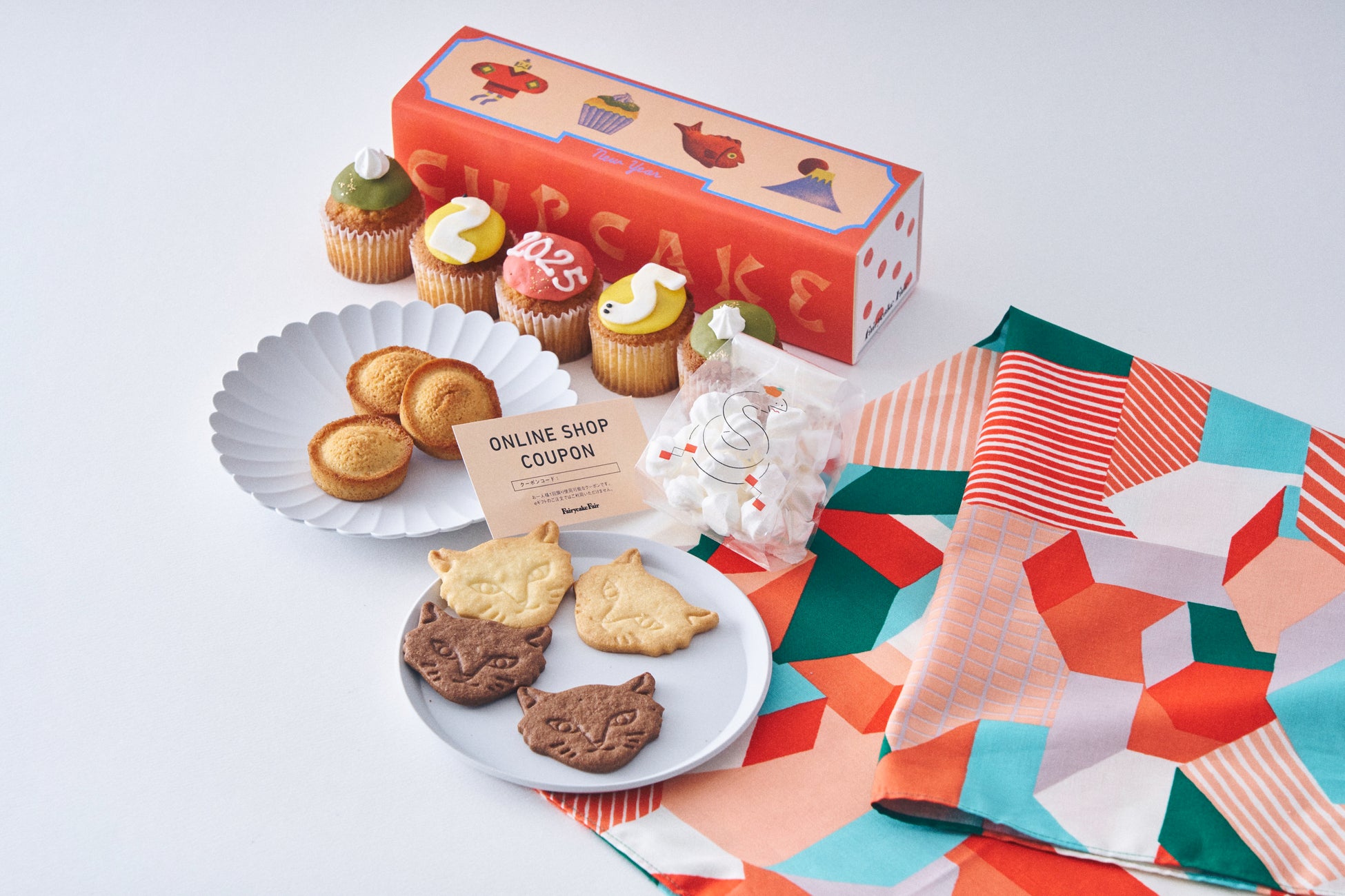 ◇ セット内容:ふろしき×1枚、ベイクド新春 巳(へび)カップケーキ×1箱、フィナンシェ×3個、ネコクッキー×4枚、レモンヨーグルトのメレンゲ白ヘビ×1袋、公式オンラインショップ20%OFFクーポン ×1枚※クーポン利用期限:2025年2月28日(金)