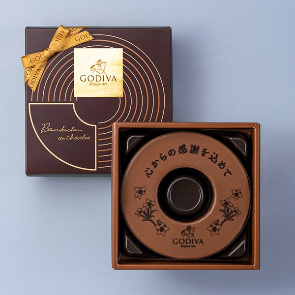 ゴディバの特別な「GODIVA 感謝のメッセージ入り バームクーヘン オ ショコラ」に、 日ごろの感謝の気持ちを込めて、大切なひとときをお過ごしください。