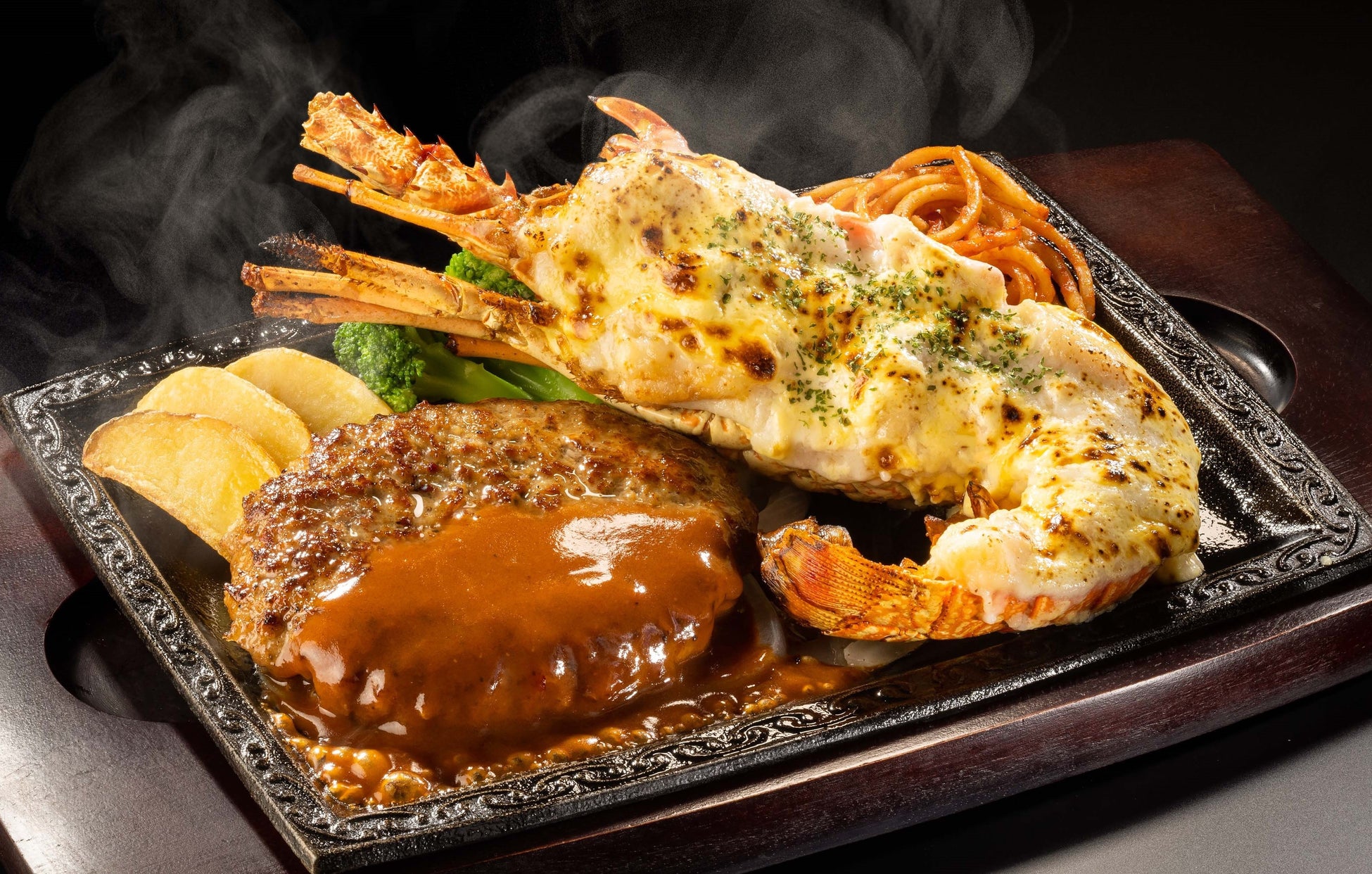身が引き締まったプリプリの伊勢海老(フロリダ産・ブラジル産)の半身を食べやすくひと口大にカット。クリーミーな“ホワイトソース”とフレンチの5大ソースの一つ“オランデーズソース”をかけて香ばしく焼き上げた、伊勢海老の濃厚な旨味が味わえる見た目にも贅沢な逸品。こだわりの厳選ヒレステーキ/ハンバーグとのコンビでご用意いたしました。