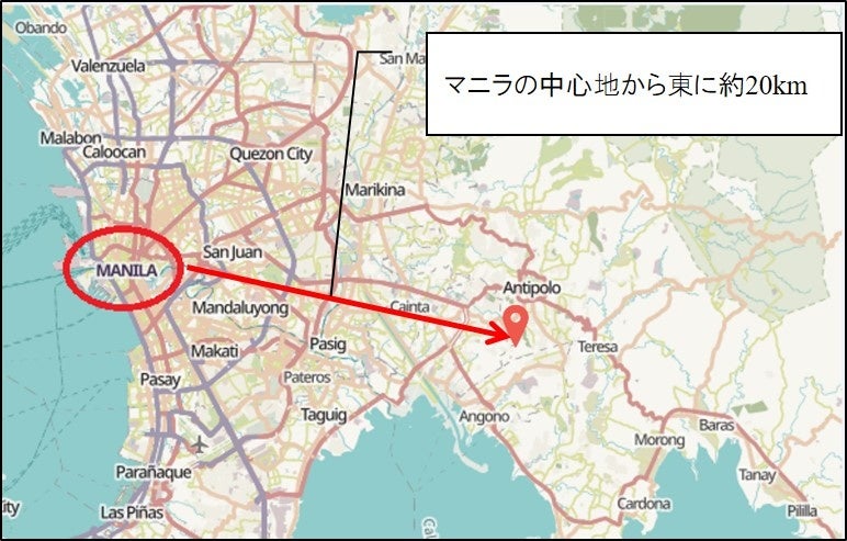 マニラの中心地から東に約20km、車で約35分の距離に位置