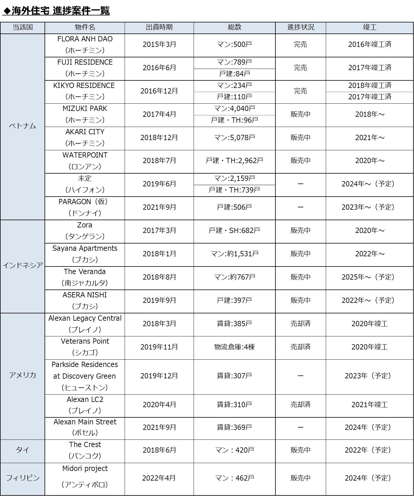 当社では、今後も本案件を皮切りに、フィリピンでのさらなる事業展開を目指すとともに、既存の進出国においても海外不動産事業のノウハウの蓄積を進め、収益基盤の拡大に努めてまいります。