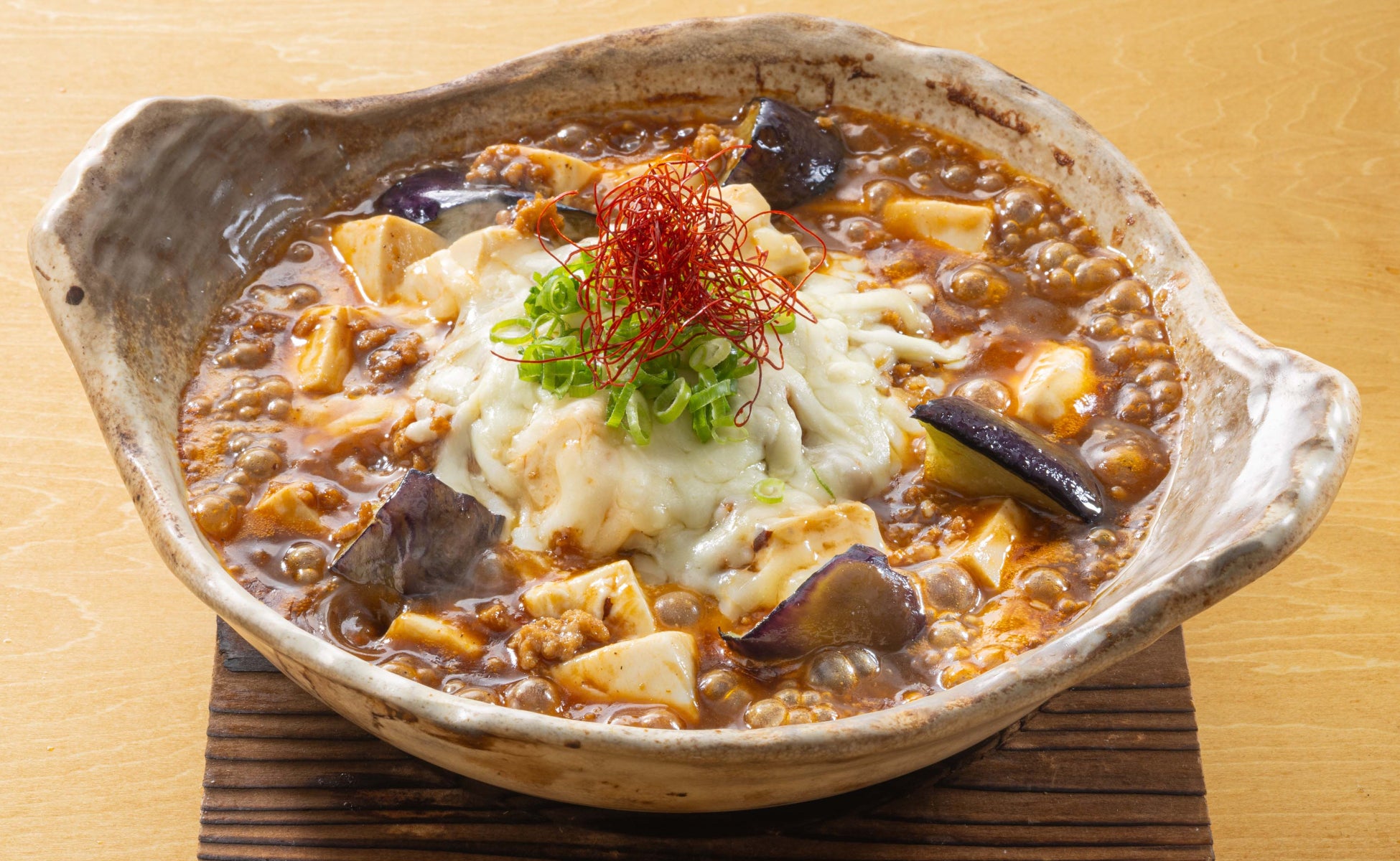 ピリリと辛みが効いたこだわりの四川麻婆豆腐を、熱々の土鍋で。夏だからこそ味わいたい、辛さと熱さが食欲を刺激する一品です。旨みたっぷりのナスに、とろーりチーズが濃厚なコクを添え、味わいに深みをプラス。最後までアツアツで楽しめる、贅沢な味わいをお届けします。
